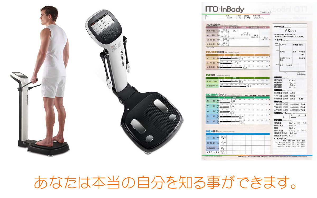 中央橋整骨院はインボディ(体成分分析装置)が測定できる施設です。どなたでも測定可能ですので、お気軽にご予約・お問い合わせ下さい。